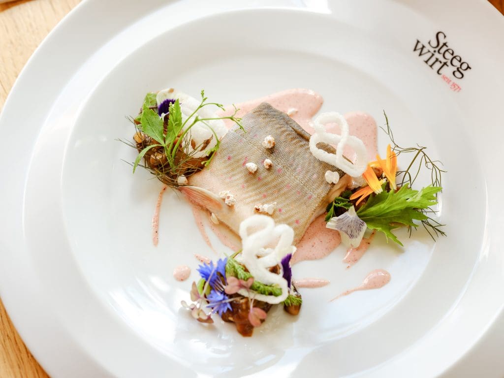 Die Geschichte des Salzbaus im Salzkammergut ist nicht ganz so alt wie die Alpen, aber 8.000 Jahre sind auch ganz ordentlich. So alt ist die Hallstattkultur, älter als die Pyramiden von Gizeh, aber nicht so alt wie die Venus von Willendorf. Hallstatt und seine Geschichte zieht gefühlte Millionen von Chinesen in das pittoreske Dorf am Ufer des gleichnamigen Sees, die nachsehen wollen, ob das Original der chinesischen Kopie auch standhält. Kulinarisch ist hier nichts zu holen, das wird dem Hallstatt-Besucher beim Anblick des gewaltigen Busparkplatzes sofort klar. Hallstatt war am besten in der Corona-Zeit, auch wenn das die wenigen vor Ort befindlichen Hotelbesitzer zweifellos anders sehen. Der See selbst muss den Vergleich mit den schönsten Fjorden Norwegens nicht scheuen. Seine Kälte ist eine Herausforderung für jeden Badegast, für die im See lebenden Reinanken hingegen eine Freude. Gepflegte Stärkung erwartet den hungrigen Gast am Seeufer in Steeg bei den Brüdern Fritz und Tamino Grampelhuber. Die Brüder lernten einst das Handwerk bei den berühmtesten Brüdern unter den Köchen, den Obauers in Werfen. Zum Grundlsee-Saibling aus der Kainischen Zucht gibt es Pesto, was Traditionalisten den Schweiß auf die Stirn treiben möge, aber hervorragend schmeckt. Das Kalbszüngerl-Eierschwammerl-Ragout mit einem guten Schuss Essig und gelbem Grießknödel ist große Klasse. Zu den hausgemachten Käsekrainern gibt es Senf von Rainer Baumgartner aus der Nachbarschaft. Sein Geschäft und seine Produktion sind ein MUST für Mustardfreunde, das Wortspiel hat Baumgartner sicher schon oft gehört.
