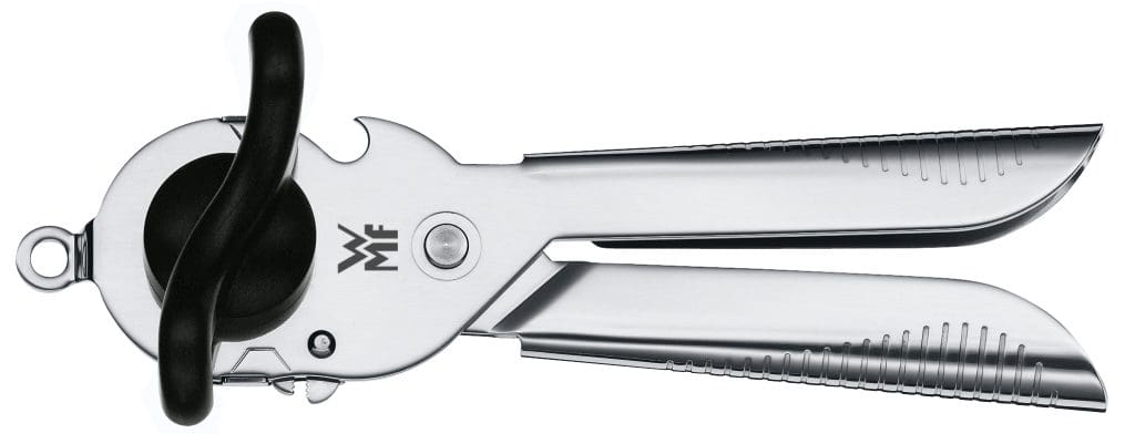 Klassischer Dosenöffner, wie man ihn auch aus der eigenen Bestecklade kennt. Prinzipiell ist anzumerken: Ein Rundgang durch den Supermarkt zeigt, dass dieses Gerät kaum noch im Alltag benötigt wird. Die einzig entdeckten Produkte ohne integrierte Öffnungslasche: Kokosmilch, Schnecken und Paradeisersauce. Das Anwendungsprinzip des WMF-Öffners scheint jedem der Tester bekannt zu sein. An der Umsetzung scheitern aber alle. Auch nach mehreren Anläufen und einer Studie der kurzen Bedienungsanleitung gelingt es nicht, auch nur eine einzige Dose zu köpfen, was eventuell an einem Produktionsfehler liegt. Das Testteam wurde zur Aufgabe gezwungen, das Küchentool disqualifiziert.