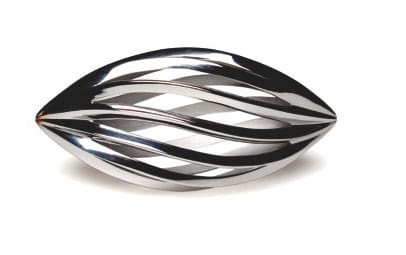 Das zweite Modell vom italienischen Hersteller Alessi. Nachwuchsdesigner Roland Kreiter hat die Presse aus rostfreiem Edelstahl entworfen und dafür vom britischen Lifestyle-Onlineportal www.mydeco.com 2009 den Preis Pure Creativity abgeräumt. Das formschöne Teil kann an ­beiden Enden verwendet werden und ist damit für Links- wie für Rechtshänder geeignet. Während man die Handpresse an einem Ende hält, wird auf die Spitze der anderen Seite eine halbierte Zitrone gesetzt und – mit erheblichem Kraftaufwand – gedreht. Wie man den daraus entweichenden Saft in ein Glas zielen soll, erschließt sich den Testern nicht. Minus: Genauso wie bei dem Modell Juicy Salif hat man sich keine Gedanken über den Verbleib der Kerne gemacht.