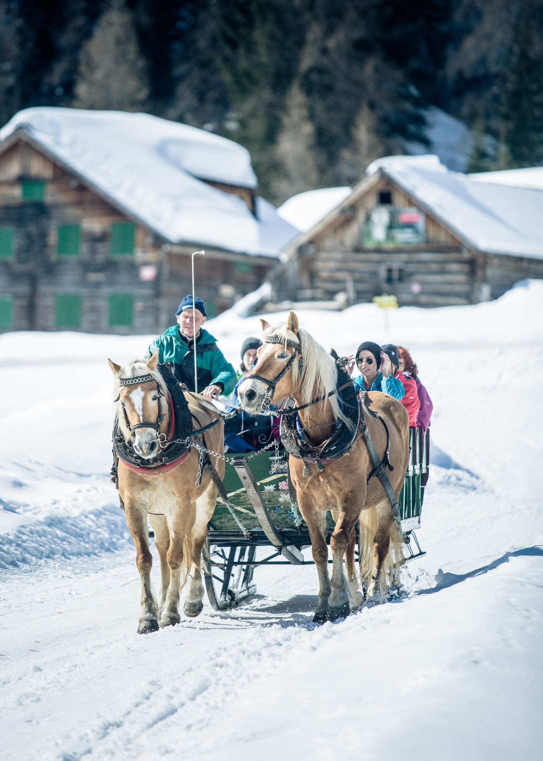 Vor dem Restaurant Gnadenalm halten dann unsere zwei schnaubenden Kaltblüter. Drinnen wartet ein Käse- und Fleischfondue mit reichlich apart inszeniertem Beiwerk. Sie kennen das, es sind diese Momente, in denen die Zeit an Bedeutung verliert. Nur das Glück am Gaumen, das Knistern des Feuers und die feinen Gespräche in der Gruppe zählen jetzt.