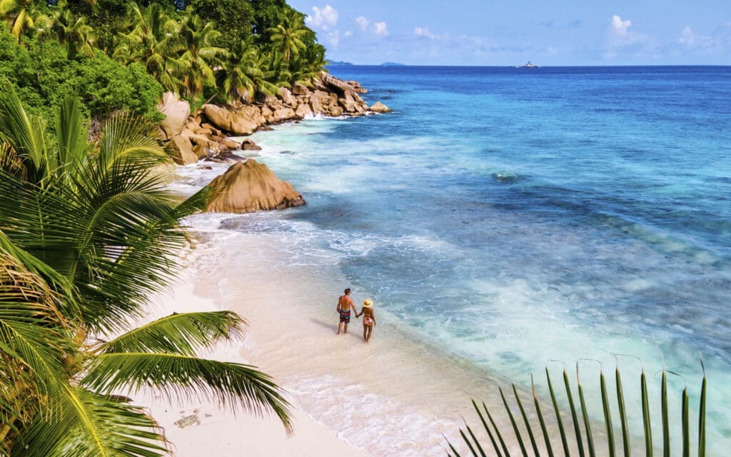 Nicht minder eindrucksvoll ist die Insel Praslin, Heimat des weltberühmten Vallée de Mai, einem märchenhaften Wald, in dem die legendäre Coco-de-Mer-Palme wächst. Mit Anse Lazio erwartet Reisende ein Strand, der oft als einer der schönsten des Indischen Ozeans bezeichnet wird. Außerdem können Tierliebhaber Riesenschildkröten, die auf Inseln wie Curieuse oder La Digue zuhause sind, beobachten. Überhaupt lohnt sich Inselhüpfen, etwa per Fähre oder Katamaran. Gut zu wissen: Zwischen Mai und September herrschen ideale Bedingungen.