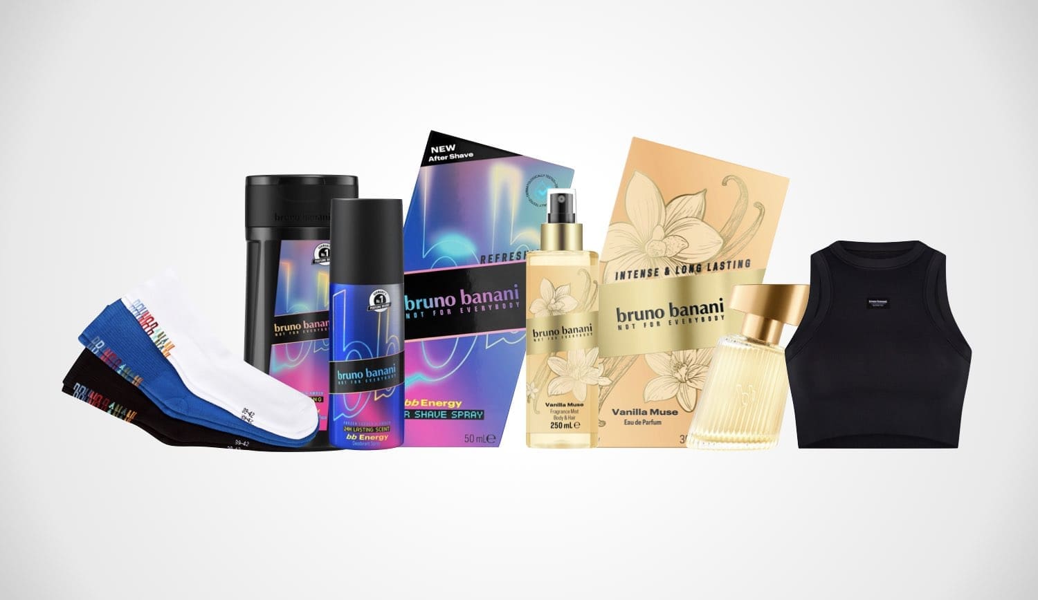 • 2x 1 bruno banani XMAS-Paket bestehend aus bb Energy Eau de Parfum, Deodorant Spray, Shower Gel, 3 Paar Sportsocken und Boxershort in Größe M for Him sowie Vanilla Muse Eau de Parfum, Body & Hair Mist sowie Top und Pants in Größe L for Her
