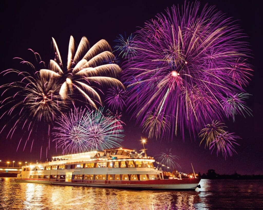 Auch die DDSG Blue Danube setzt zu Silvester auf die große Bühne Donau. Die Schiffe MS Admiral Tegetthoff, MS Austria, MS Kaiserin Elisabeth und MS Dürnstein laden zu festlichen Rundfahrten mit Livebands, Gala-Buffet und Mitternachtsimbiss. Wenn um Punkt Mitternacht die Pummerin erklingt und der Donauwalzer über dem Wasser erklingt, genießen Sie ein Freideck plus Panorama aus Licht und Feuerwerk.